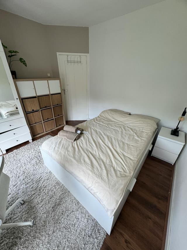 The room is part of a 55m2 apartment and is located at the quiet rear side of the property, making it the perfect retreat after a busy day. The apartment includes a fully equipped kitchen with a gas stove, microwave oven, dishwasher, and direct access to the balcony. A modern bathroom, separate toilet, and washing machine are all shared with just two other tenants. A private storage room in the basement offers extra space for your belongings.