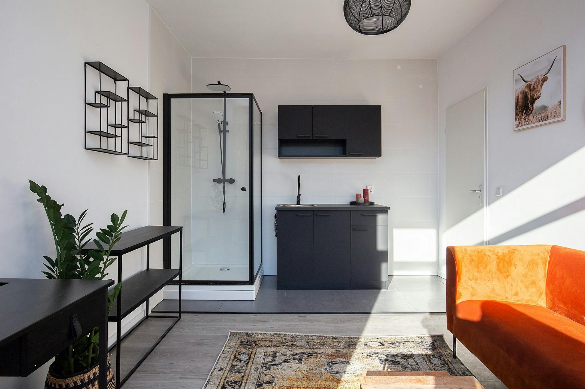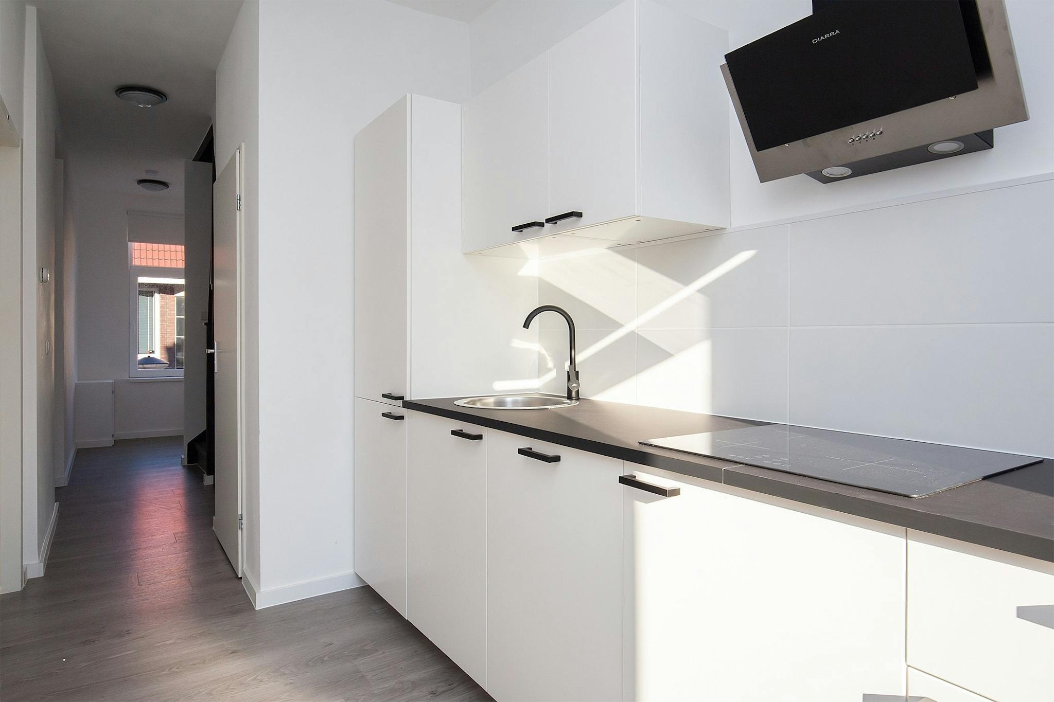 Via the central staircase you reach this living floor, 2 rooms have been made into 1 house with a large modern kitchen. Kitchen unit and shower cubicle in the room(s).