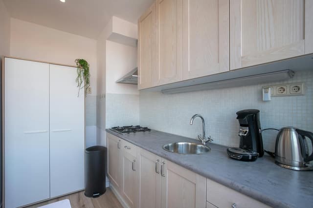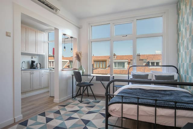 The apartment is very well maintained. In this apartment are a total of 3 furnished studios made. The toilet, balcony and a common laundry room you share with 2 other people. Each studio has a pleasant light and the area is very well maintained.