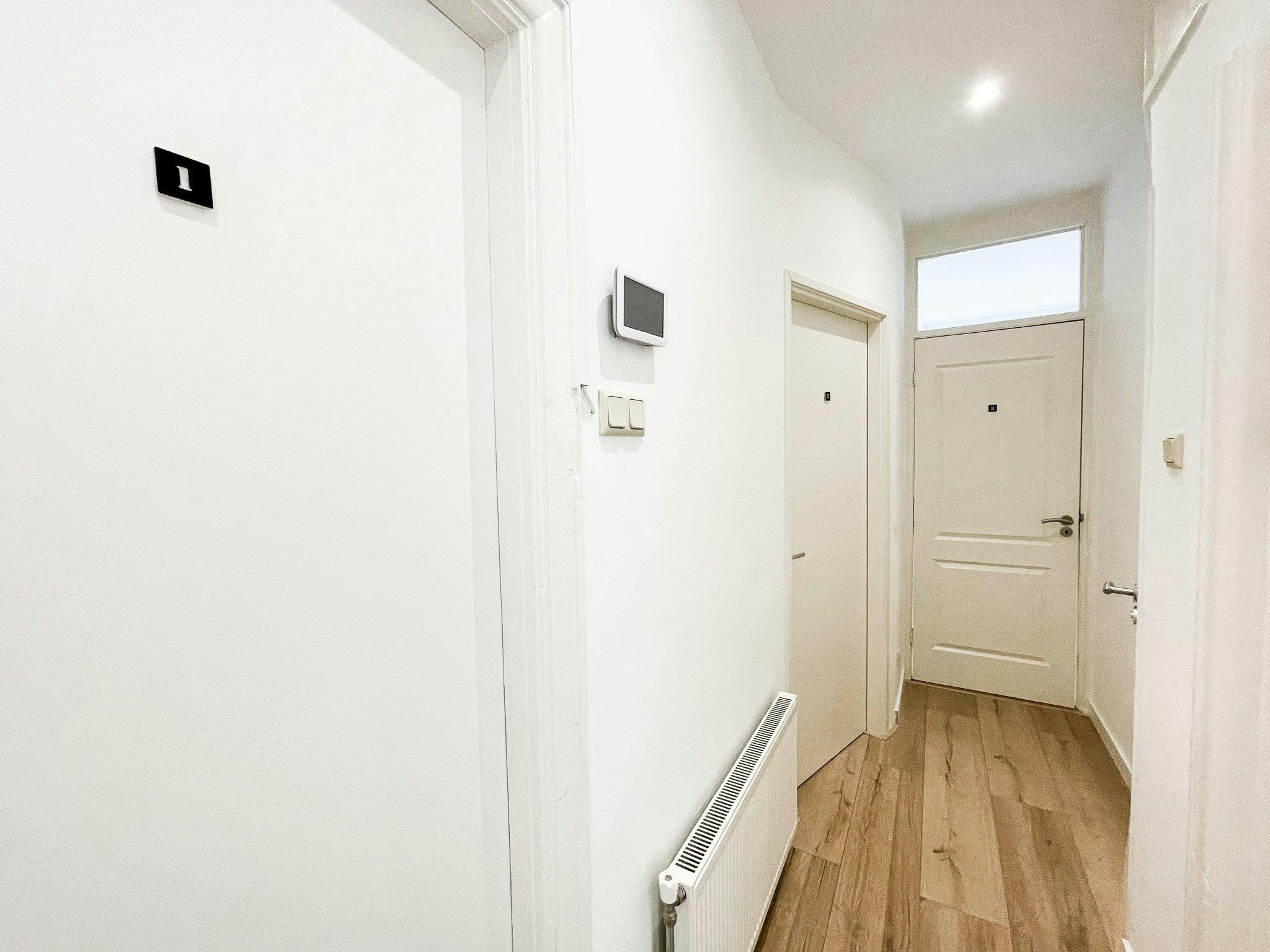 The apartment is very well maintained. In this apartment are a total of 3 furnished studios made. The toilet, balcony and a common laundry room you share with 2 other people. Each studio has a pleasant light and the area is very well maintained.