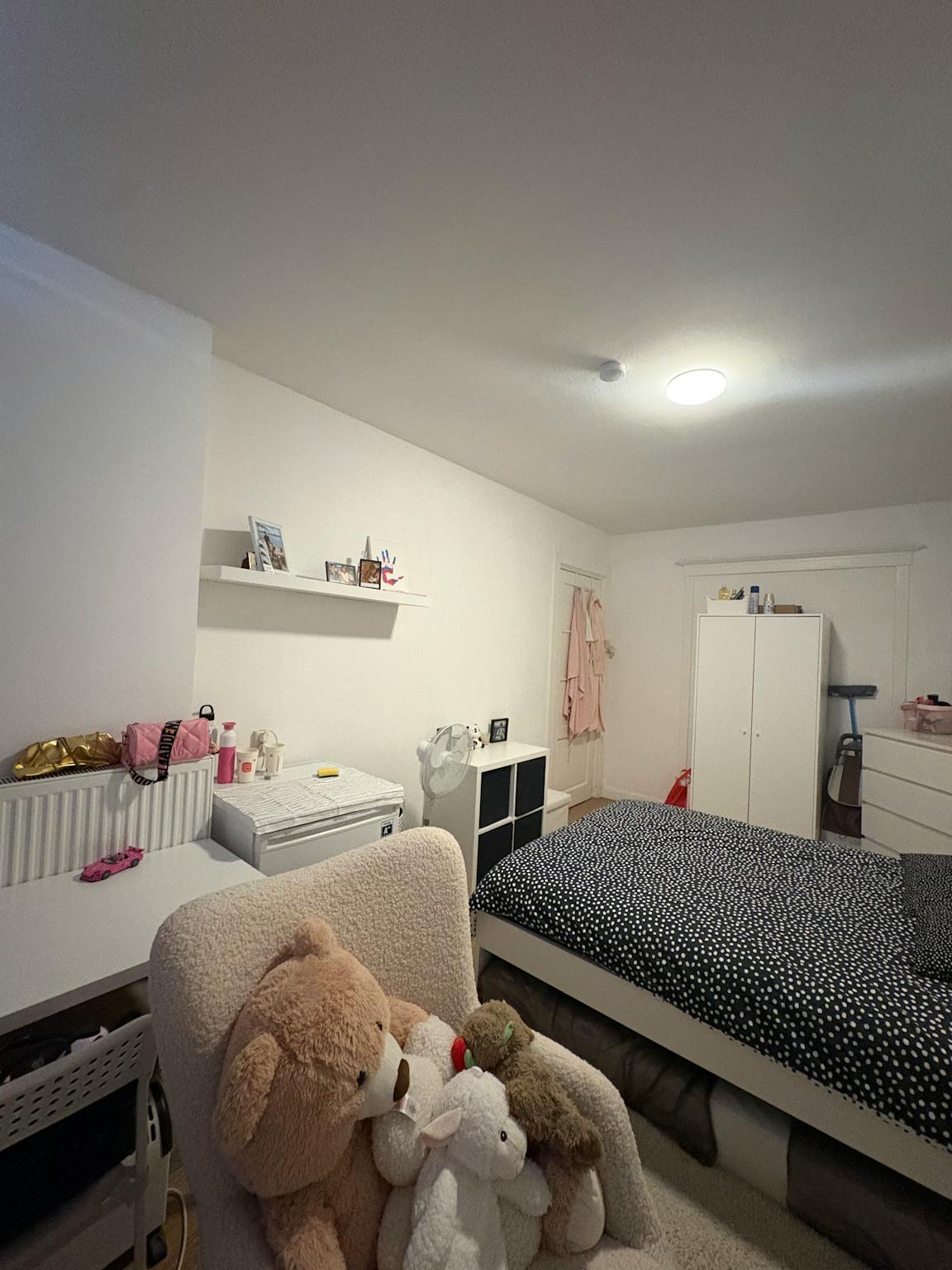 The room is still rented out, not all the furniture on the pictures will be in the room.