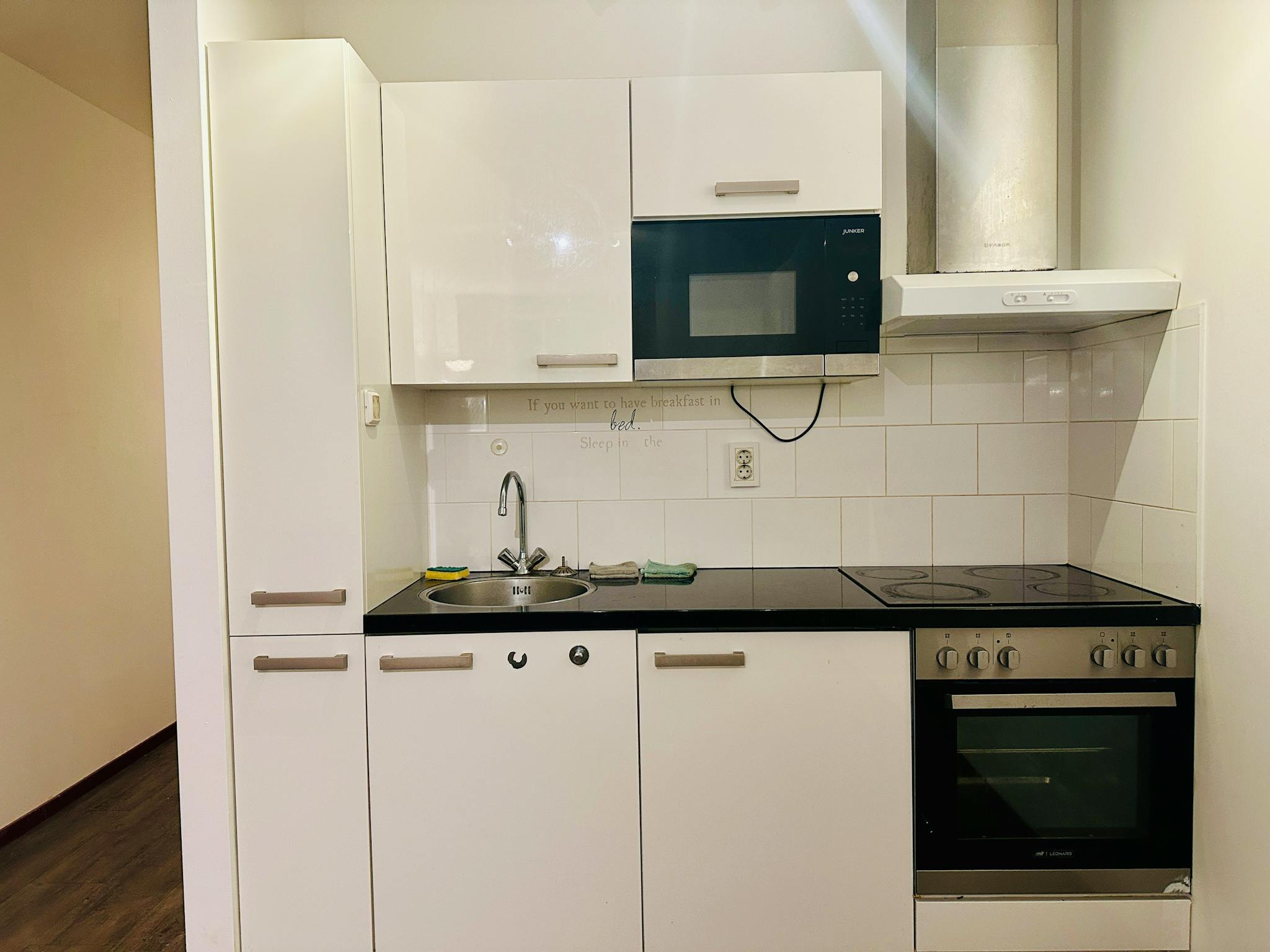 Upon entering through the shared entrance, you are welcomed by a warm hallway. To the left, you’ll find the kitchen and the bathroom. To the right, there is a storage space and a small bedroom — a practical and efficient use of space. Continuing down the hallway, you enter the bright and spacious living room. To the right of the living room is the main bedroom, which is well-proportioned and comfortable. To the left, you can access the wash area and the bathroom, making daily routines convenient.