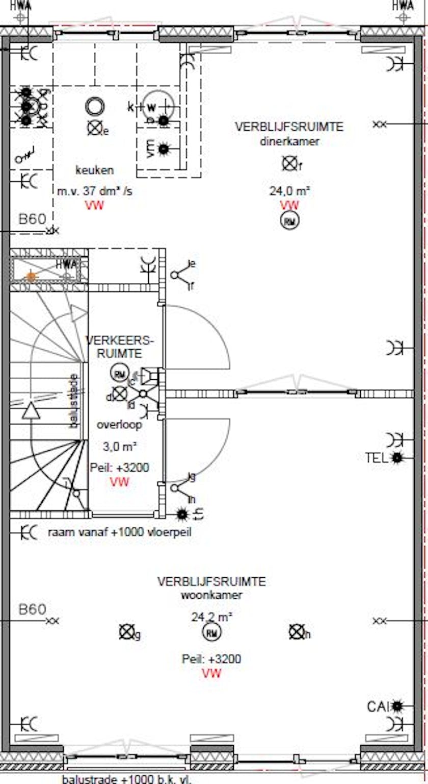 Floor 1: spacious living room, dining area and modern kitchen. Also 15m2 terrace.
