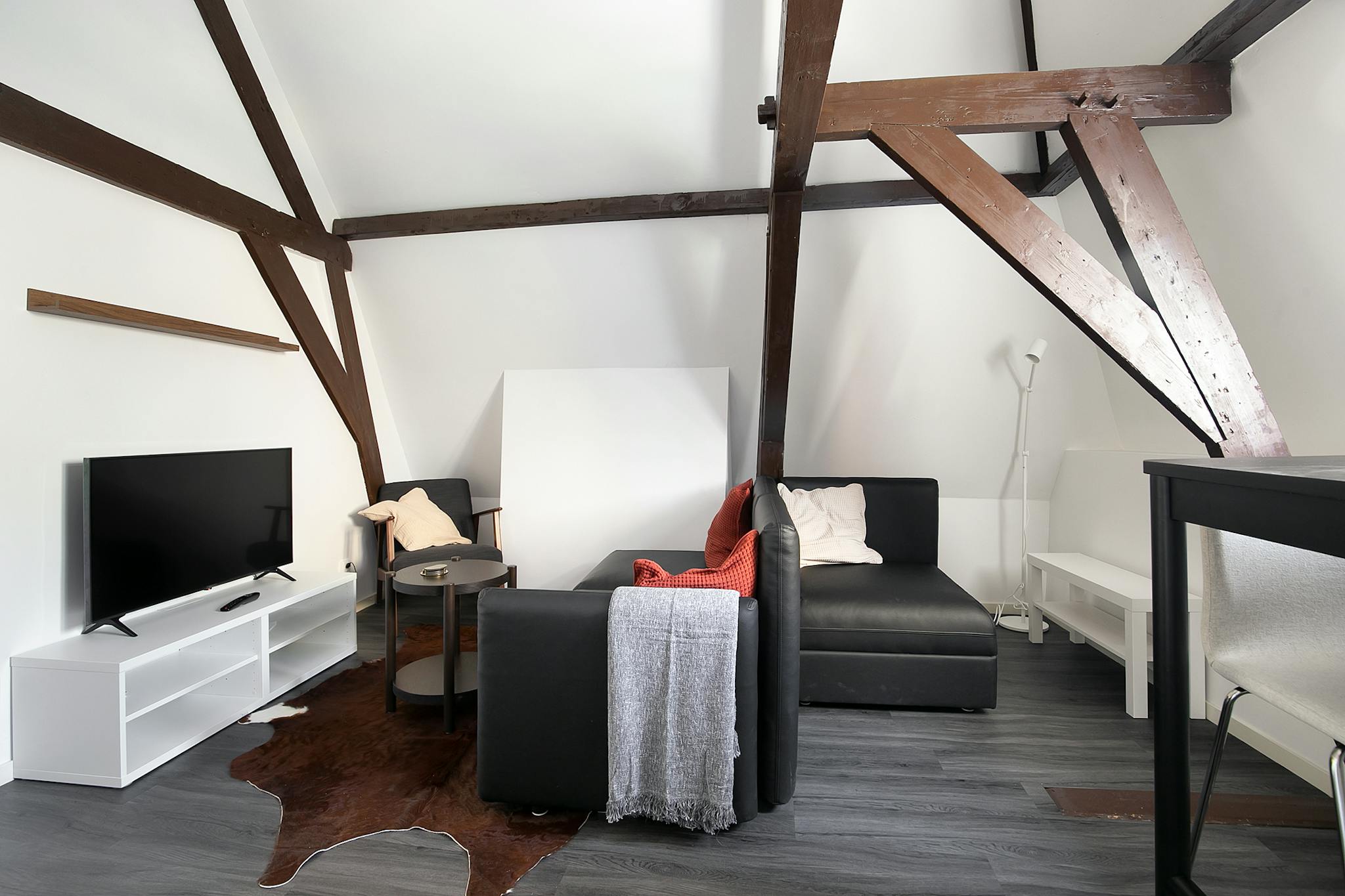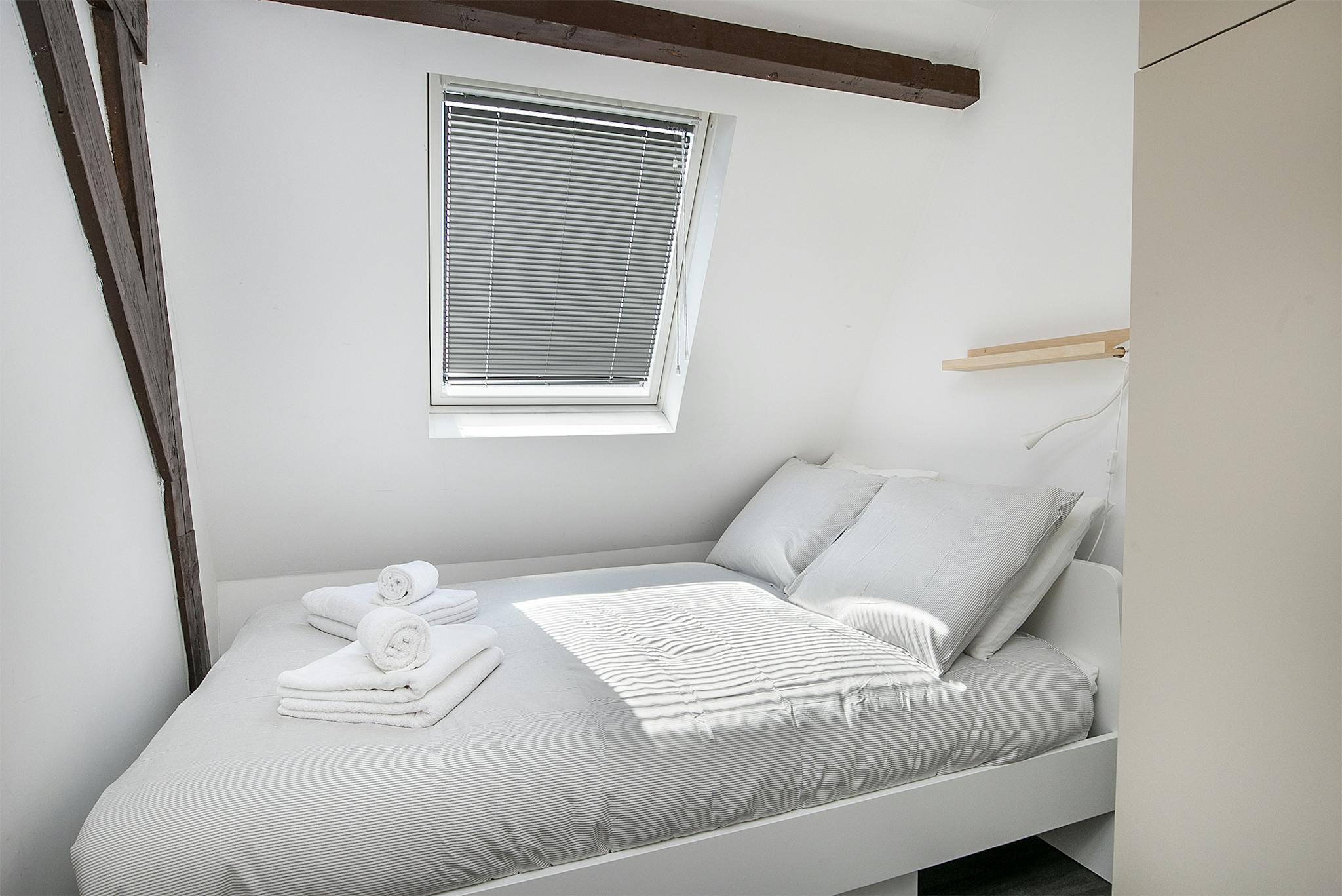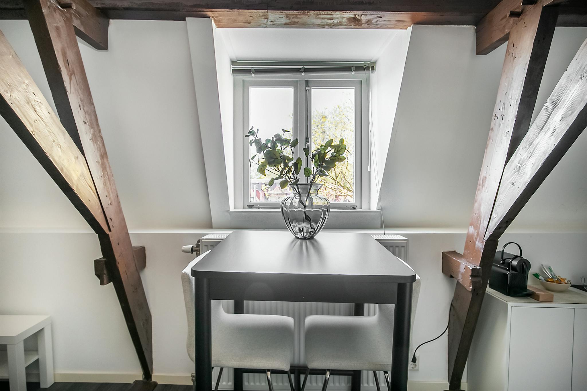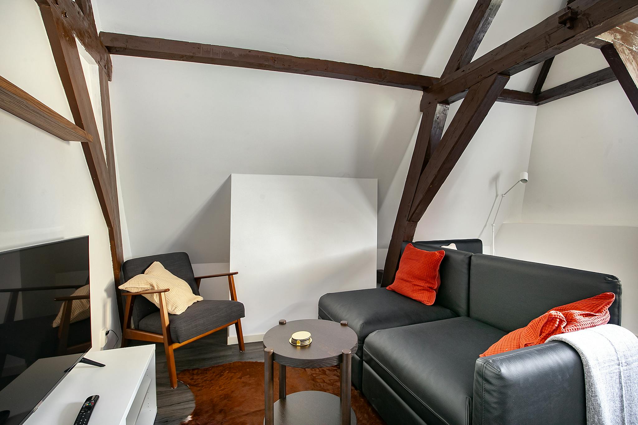 This apartment of approximately 40 m2 each, is to be found on the first floor of the building. The apartment offers a modern interior that includes a dining area, comfy sofa, a fully equipped kitchen, a bathroom, a separate toilet, a bedroom with a double bed and a nice view from the apartment. Combine the cosy interior with the location in a quiet former monastery garden, in the heart of the city yet away from the daily fuzz of the city.