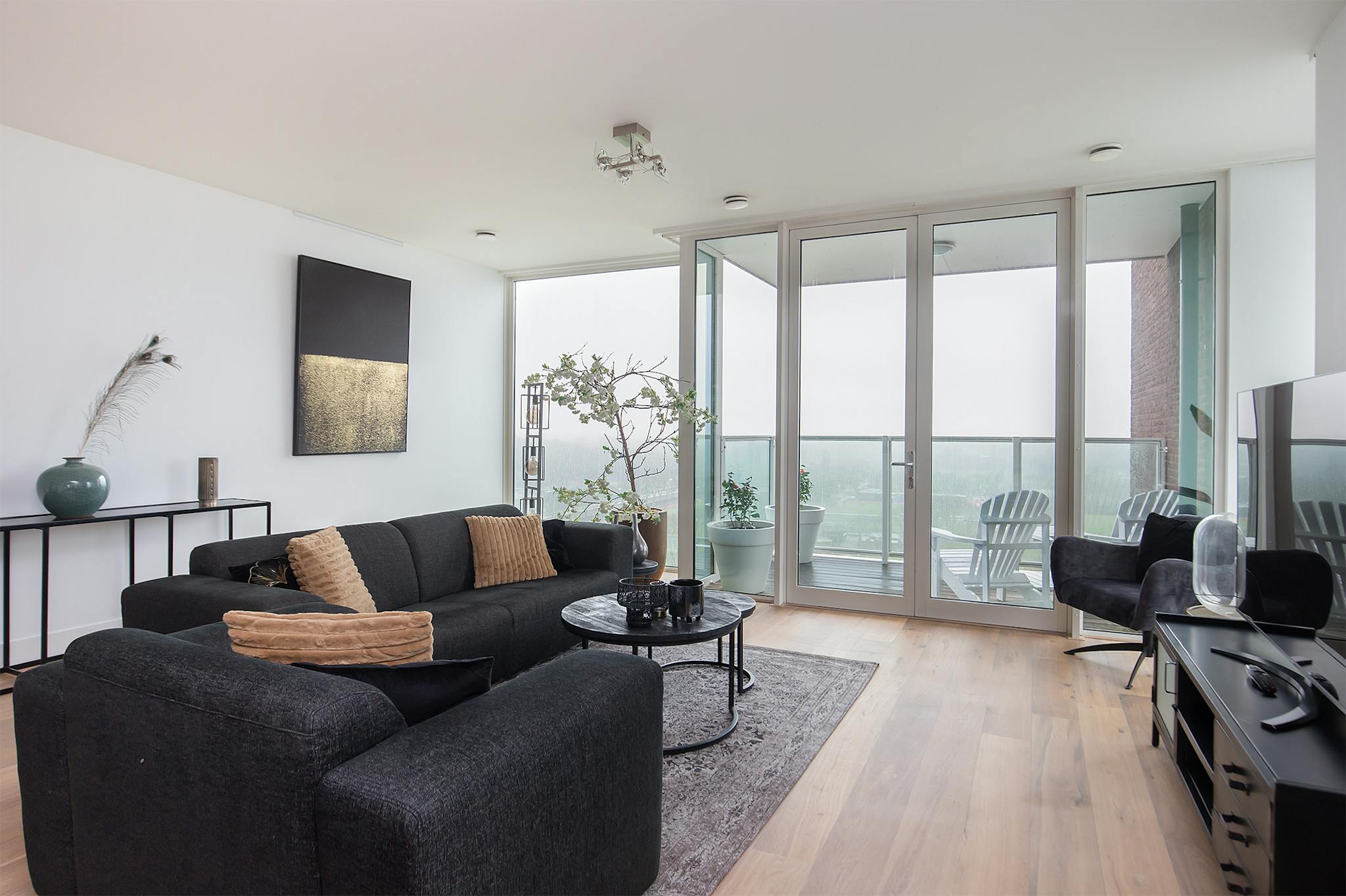 The apartments stand out because of the good use of space, sophisticated application of light and high quality material and the way the landscape of the housing is allowed. Each apartment has two spacious bedrooms with their own bathroom with bath and toilet. This appartment has a spacious living room with an open kitchen with all equipment. From the living room you have access to a balcony with a beautiful view.