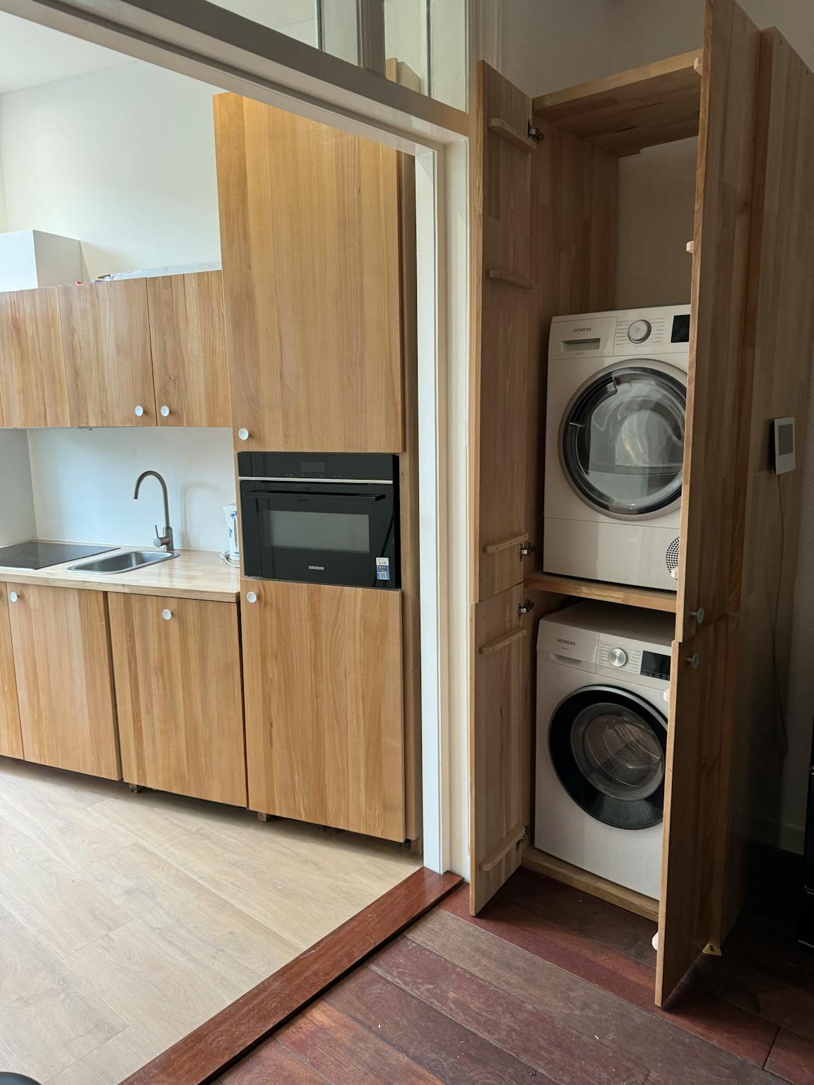 It has recently be renovated and it has 2 completely equipped kitchens with fridge/freezer, oven/microwave, dishwasher. Additionally a washing machine and dryer.