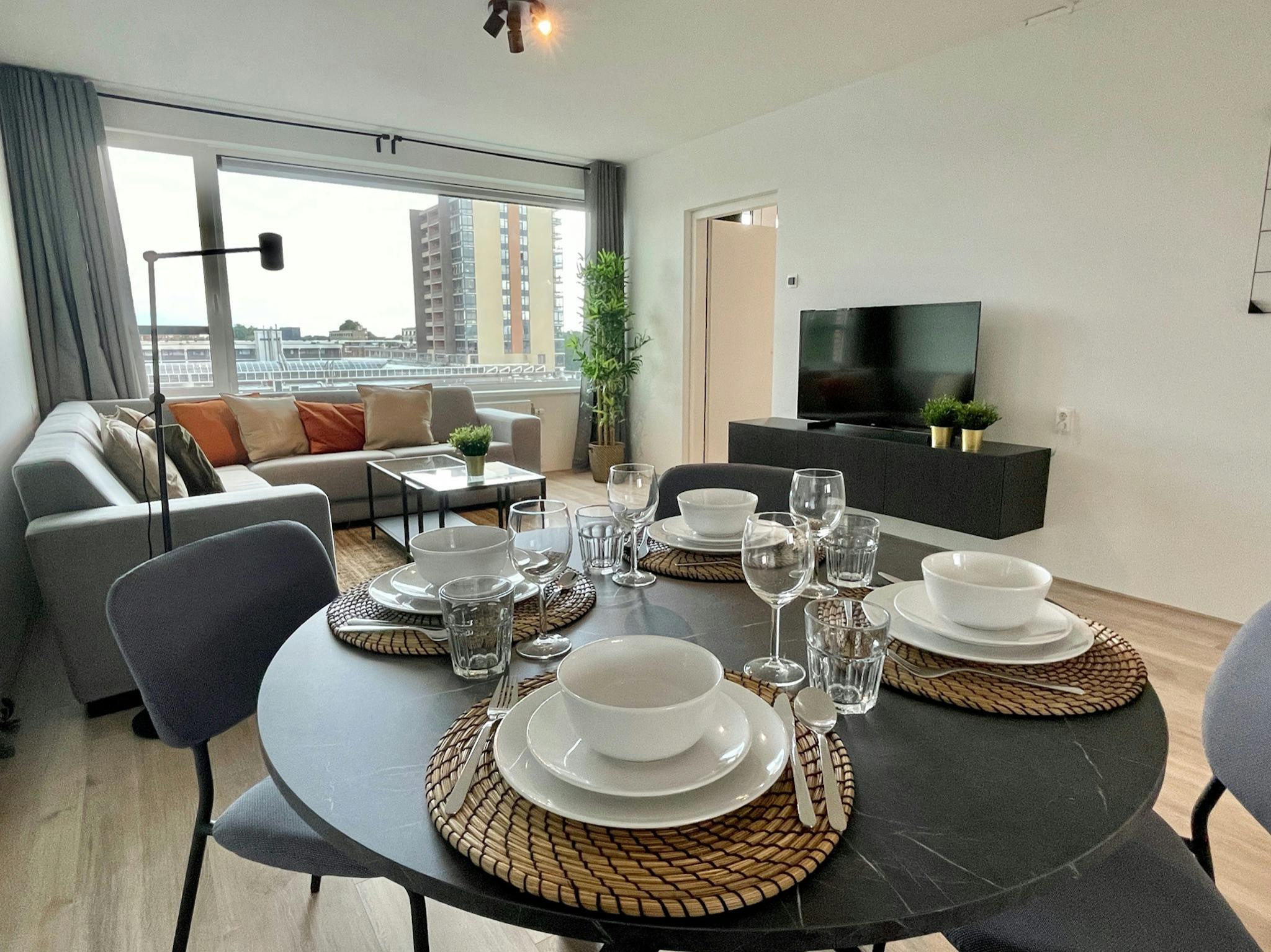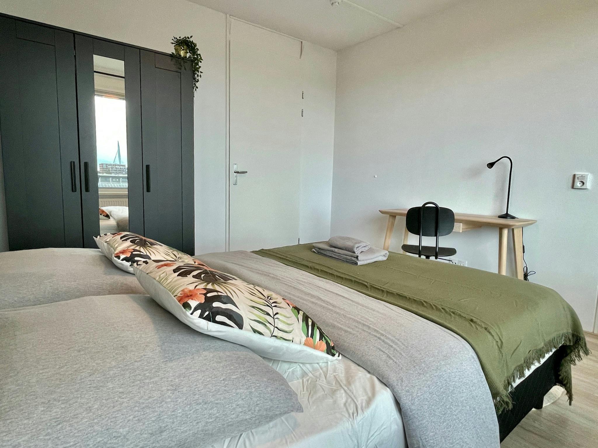 - Curtains throughout the apartment: Blackout curtains in the bedrooms and 'see-through' curtains in the living room.