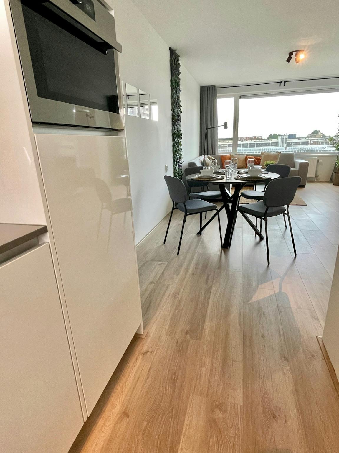 The apartment is delivered in a way that you can move in with just your suitcase. This means the following: