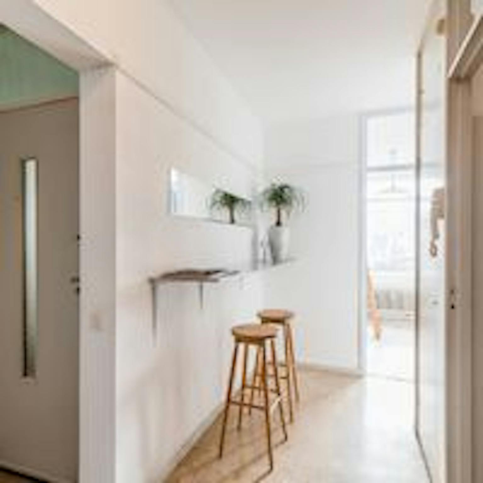 Upon entering the apartment, you’ll find a hallway with space to hang your coat. On the left side are the bathroom and toilet, where washing facilities are available for your use. Moving forward, you'll enter the kitchen, which is fully equipped with all necessary kitchenware and appliances, including an oven, microwave, large fridge, and induction stove—all for your personal use.