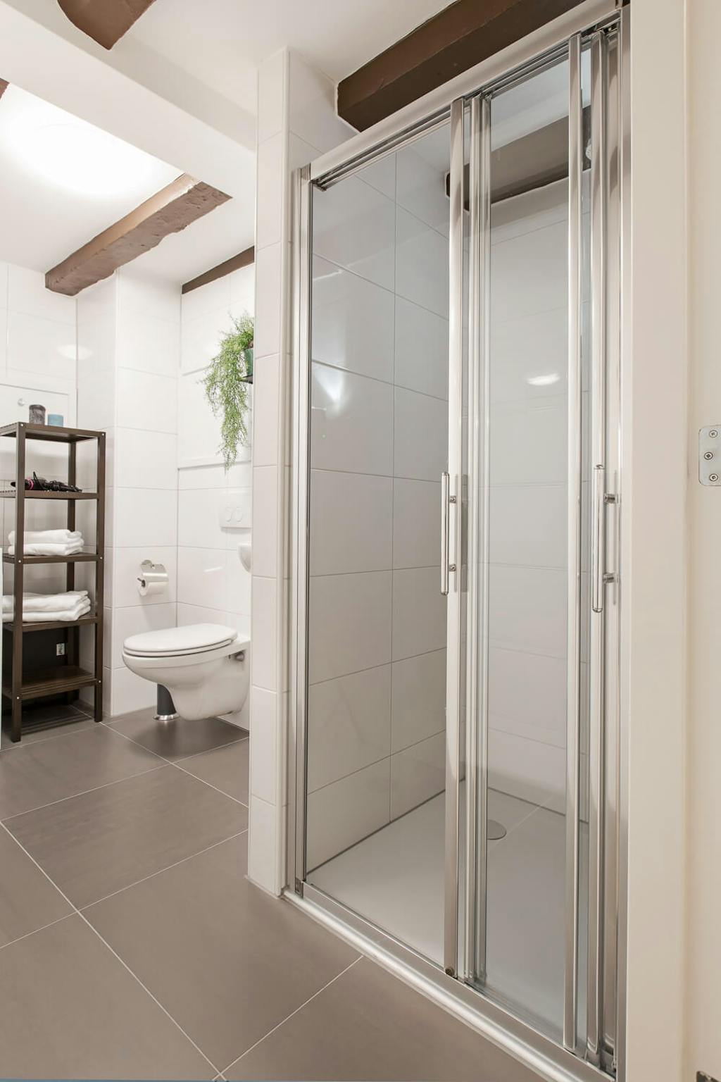 The Canal Garden Apartment IC is located on the first floor, accessible by stairs. It’s a 1-bedroom apartment, with one bathroom and a separate toilet.