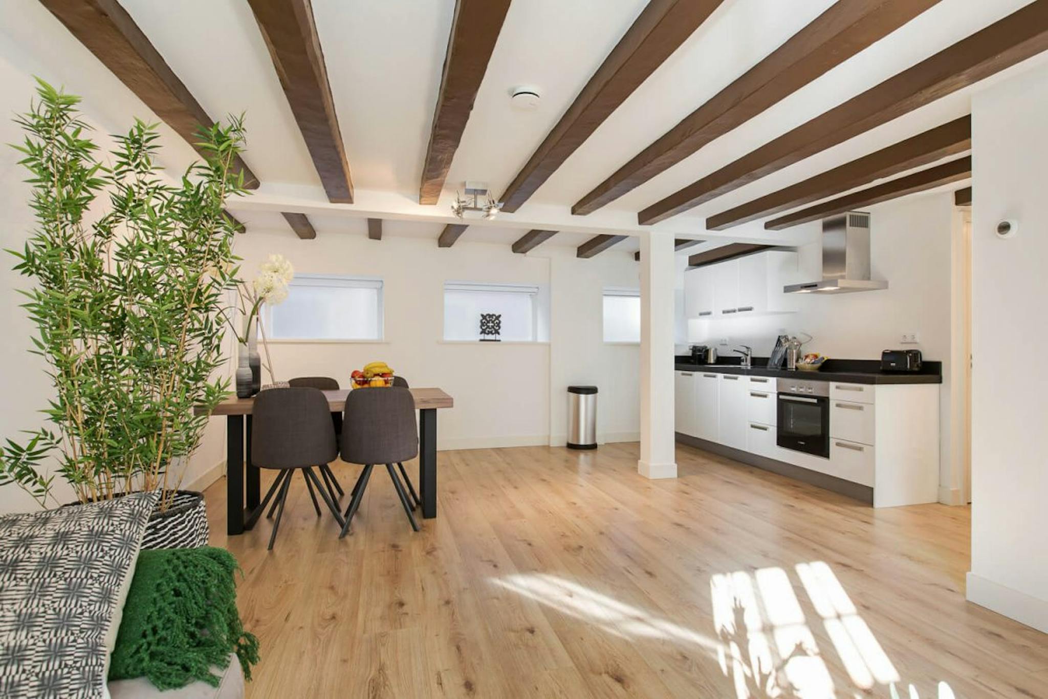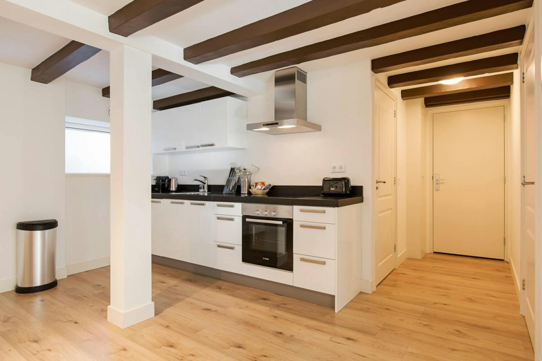 The fully furnished and equipped serviced apartments inside this lovely building have a modern interior that includes a dining area, comfy sofa, a fully equipped kitchen, a bathroom, a separate toilet, one or two bedrooms with a double bed, and a nice view from the apartment at the front side of the building. Combine the cozy interior with the location along the famous canal Oudegracht, and you have found the perfect location for your short stay experience in Utrecht.