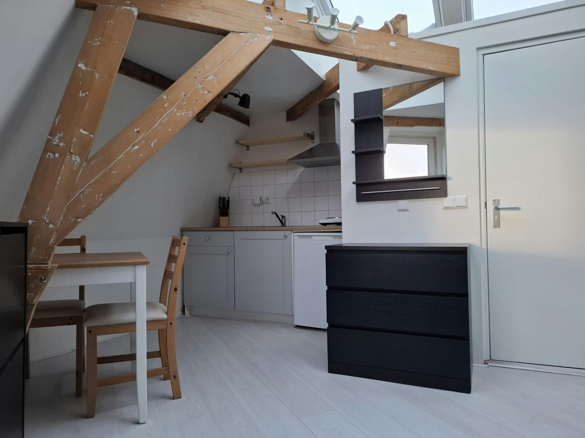 De studio is van alle gemakken voorzien en is erg licht door zijn grote/unieke dakramen in het dak.