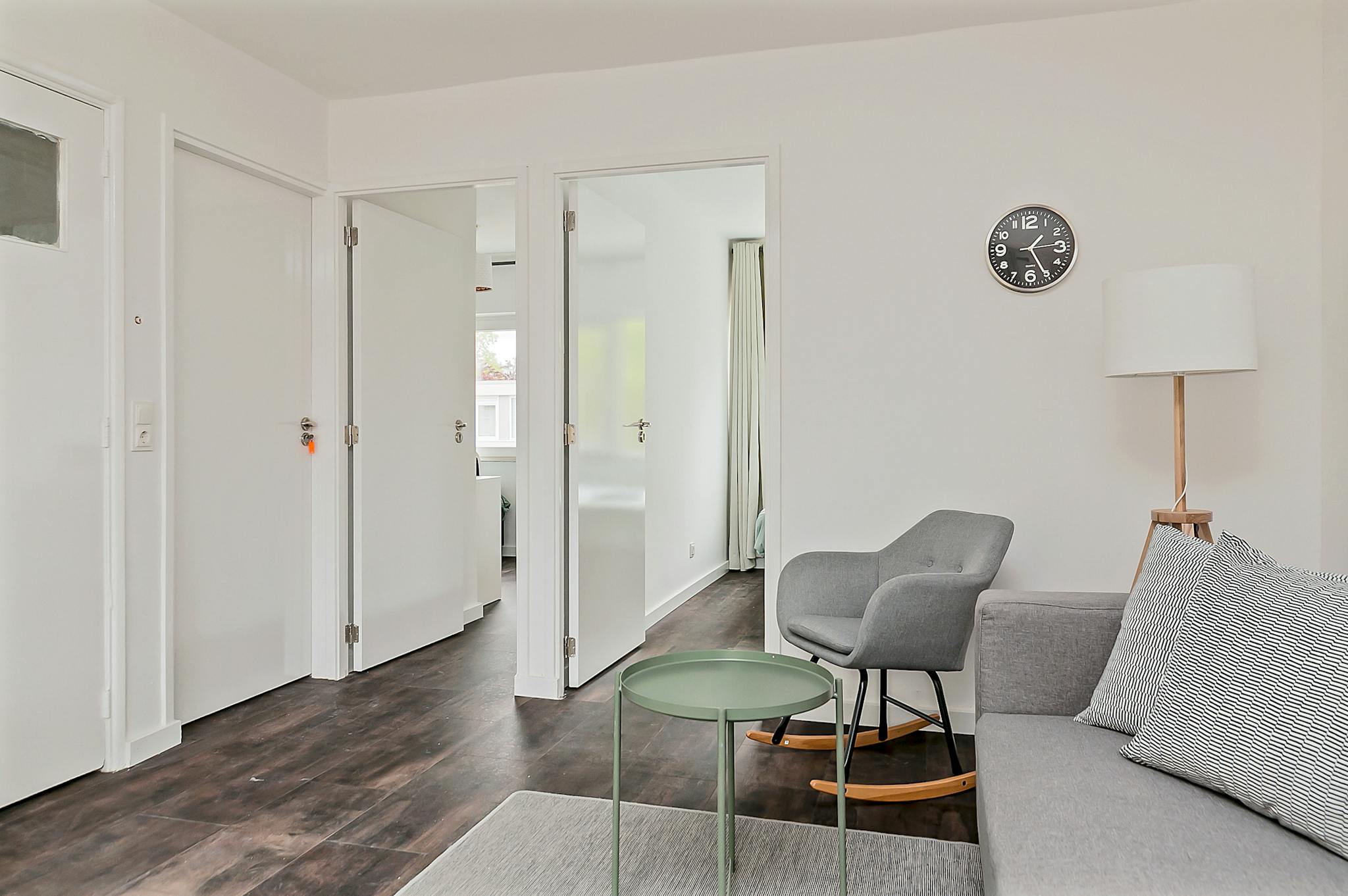 Upon entering, you will find a completely renovated apartment with brand-new furniture. The living room features a comfortable couch and a cozy rocking chair. The kitchen is equipped with a combi microwave oven, induction hob, dishwasher, and (deep) freezer. Around the corner from the living room, you will find the bathroom, which is also newly renovated. It includes a toilet with a bidet, and the shower is heated by a central water heater. The bathroom has an automatic ventilation system that turns on with the lights. The entire apartment has underfloor heating, making it comfortable to walk around in socks. We recommend leaving your shoes at the entrance.