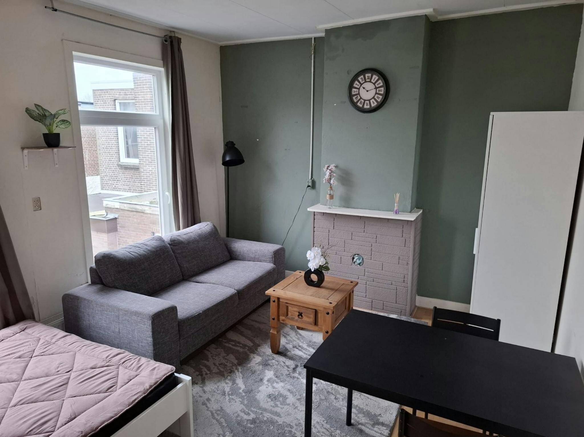 Upon entering, you will find a completely renovated apartment with brand-new furniture. The living room features a comfortable couch and a cozy rocking chair. The kitchen is equipped with a combi microwave oven, induction hob, dishwasher, and (deep) freezer. Around the corner from the living room, you will find the bathroom, which is also newly renovated. It includes a toilet with a bidet, and the shower is heated by a central water heater. The bathroom has an automatic ventilation system that turns on with the lights. The entire apartment has underfloor heating, making it comfortable to walk around in socks. We recommend leaving your shoes at the entrance.