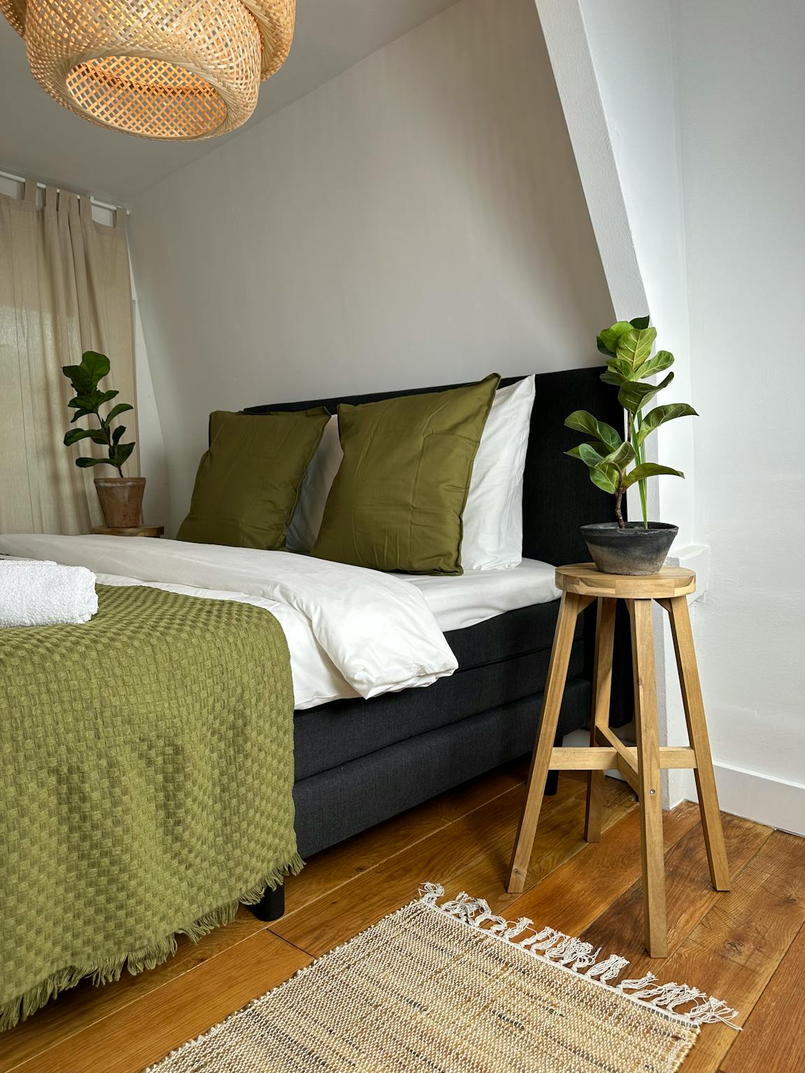 The master bedroom includes a king size bed which is brand new and very comfortable. You can also find a big closet with enough space for your clothes. There is a tv with Netflix possibility in the master bedroom and you can connect your device on it any time. This room is very light and cozy with a view on the oldest and biggest square of Zeist.