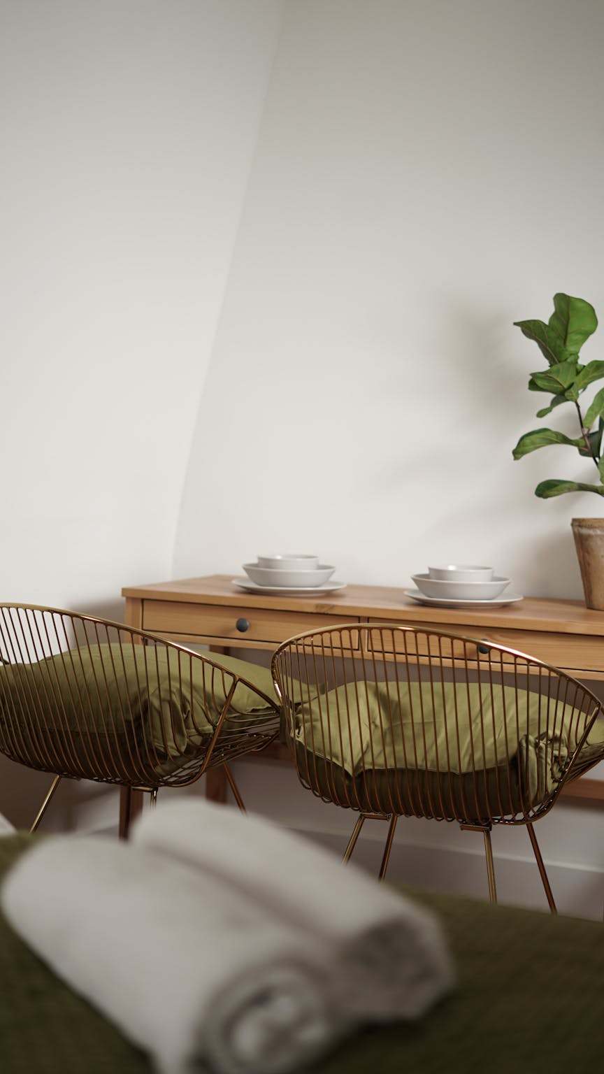 Both rooms are equipped with a spacious closet, a big mirror and a desk with chair, perfect to work at home.