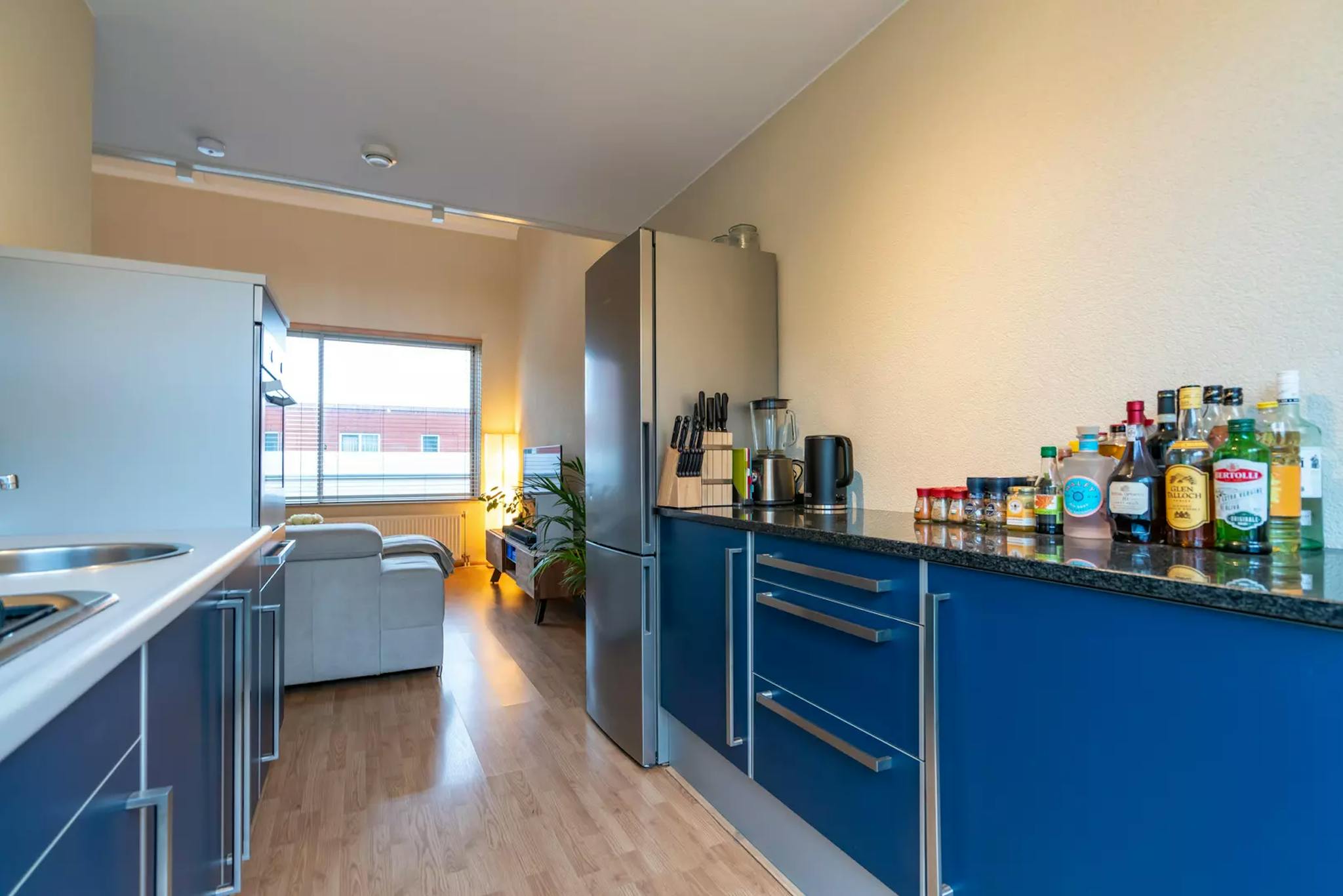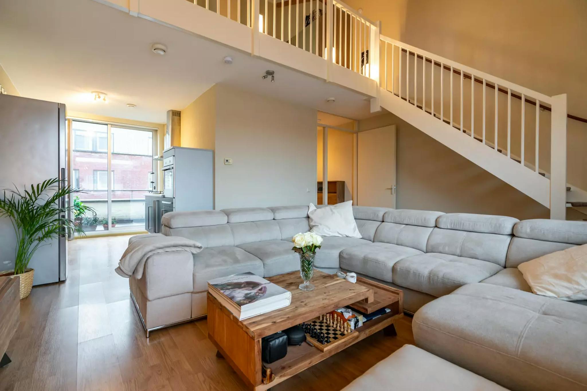 LAY-OUT: Entrance, hall with the meter cupboard (4 groups and 2 earth leakage switches) and access to a fully tiled bathroom with toilet, shower cabin, washing machine connection and a sink. The playful living room of approximately 25m2 is very light through the large sliding window. The living room has a very spatial effect due to the existing loft and the high ridge. At the front is the open kitchen. The kitchen is equipped with the following appliances: gas hob, stainless steel extractor hood and oven. There is also a fixed cupboard with storage space, the central heating combi boiler and the heat recovery system. From the kitchen, sliding doors provide access to the terrace, where you can quickly enjoy the sun.